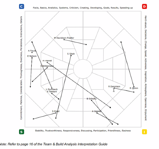 We start by analyzing the EDISC profile of each employee, mapping out their natural and efforted styles. This helps us identify communication preferences, decision-making styles, stress responses, and motivation triggers.